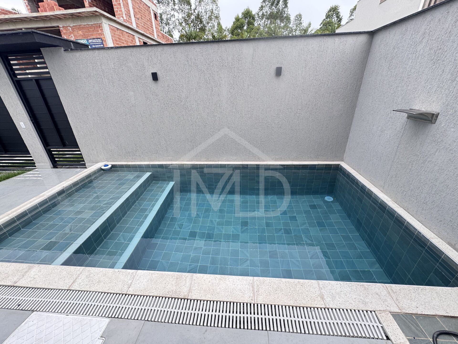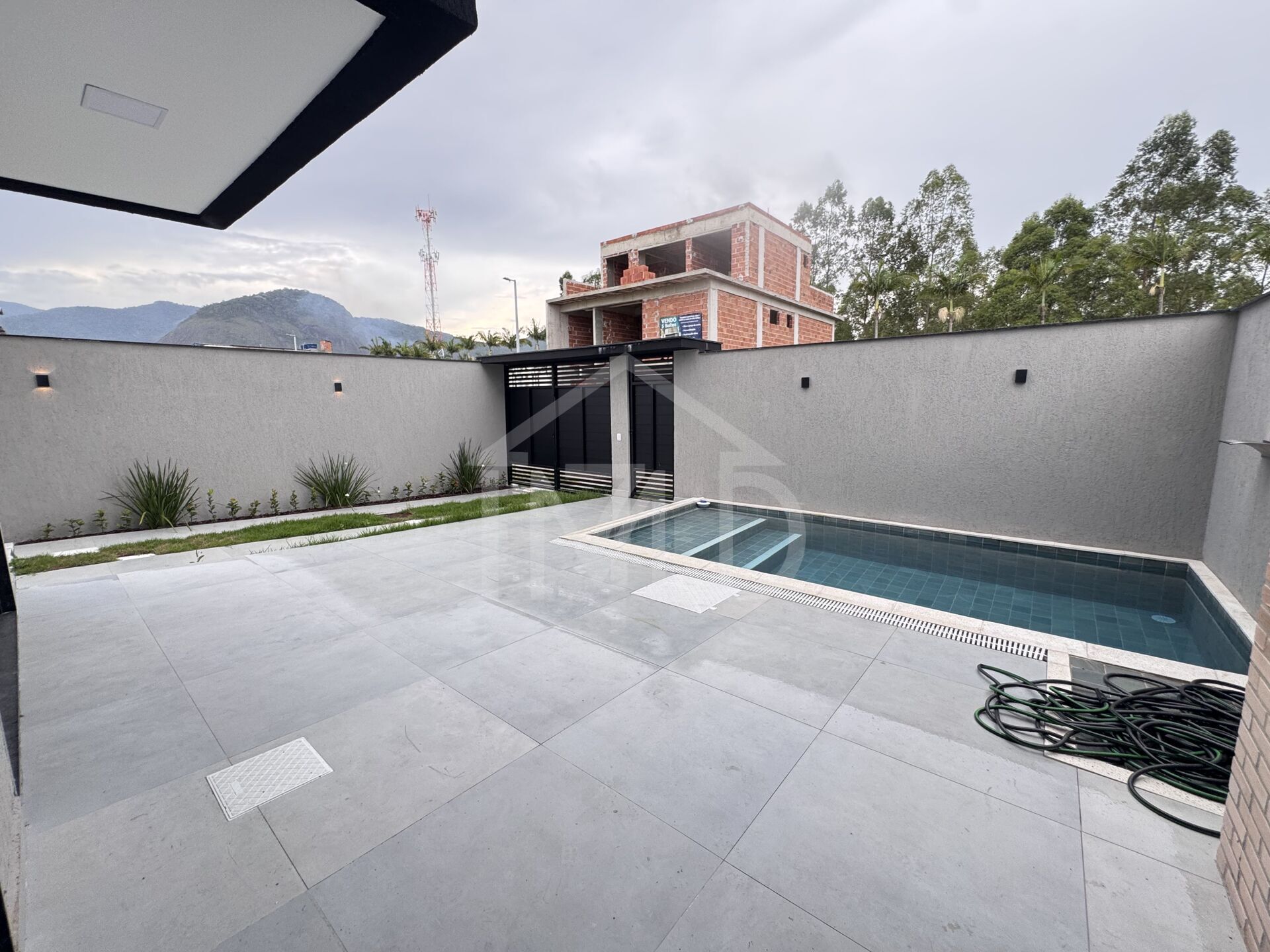 • Área frontal com piscina e espaço gourmet