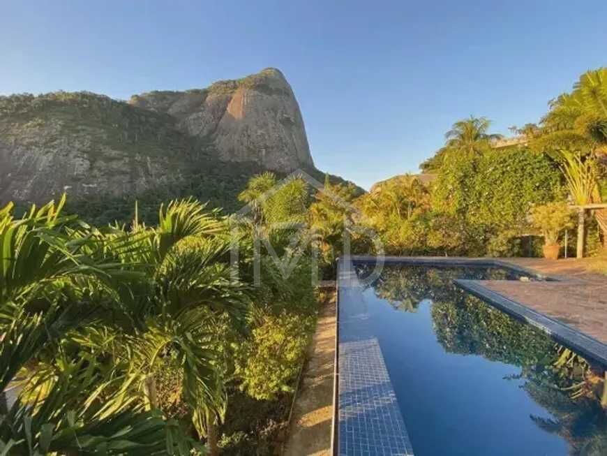 Casa Locazida no Joá, dentro de condomínio com segurança 24 horas. Condomínio da Praia da Jogatina, na Zona Oeste do Rio de Janeiro, cercado pela beleza da mata atlântica. São 922 metros de terreno e 682 de área construída. São 4 suítes, totalmente reformadas e com vista para Pedra da Gávea e parcial da praia da Barra. Área gourmet com churrasqueira a carvão, gás, sauna, piscina com borda infinita e um lindo gramado com a Pedra da Gávea invadindo a casa e vista parcial praia da Barra. Terreno localizado totalmente dentro do condomínio, reduto de charme, beleza natural e tranquilidade.