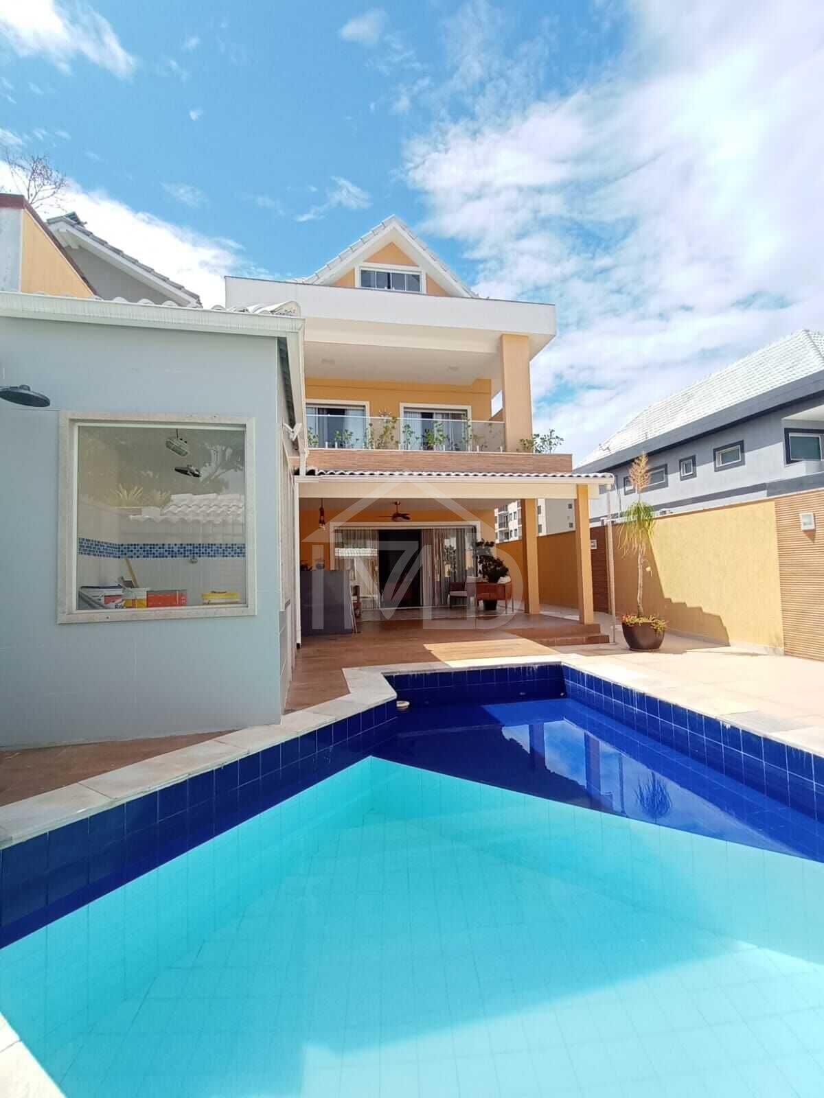 Maravilhosa casa duplex com cômodos amplos e alto padrão de acabamento em condomínio no Recreio dos Bandeirantes. São 533m² de terreno com 268m² construídos divididos em sala, sótão, 5 quartos sendo 4 suítes, lavabo, cozinha planejada com área de serviço e dependência completa. Área externa com piscina, sauna e espaço gourmet. Armários. Ar condicionado Split. Iluminação indireta. 2 vagas de garagem. Condomínio com lazer, van e portaria com segurança 24 horas.