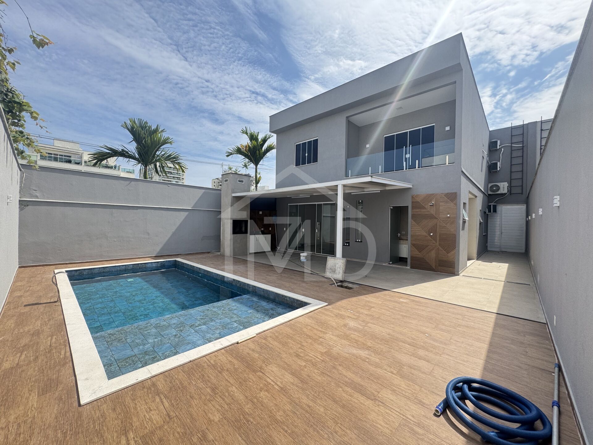 Linda casa duplex com 331 m² de área construída, moderna com a porta principal (Big Door), com cobertura em pergolado revestido em vetroresina (material super inovador no mercado) e com uma maravilhosa piscina com luzes de led por controle remoto, ducha, espaço para duas espreguiçadeiras e uma maravilhosa cascata de água. É uma casa impressionante, com forte atenção aos detalhes e aos acabamentos com alta qualidade, durabilidade e sofisticação. A garagem da casa vem com acabamento impecável de sanca com led e vaga para 2 veículos. o térreo da casa se dispõe de 1 suite/escritorio, sala de TV + sala de estar com lavabo, integrada a cozinha com ilha central em granito, com conceito aberto, sem pilares. Subindo ao segundo piso, temos 3 megas suites, sendo uma com closet e preparada para a instalação de banheira.