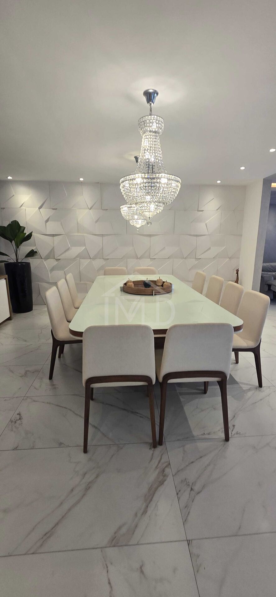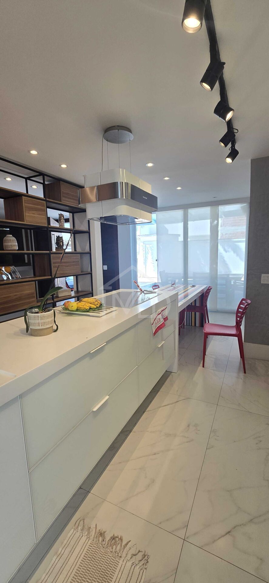 Com um projeto arquitetônico elegante e integrado, a casa oferece uma sala ampla em dois ambientes, além de uma sala de jantar imponente, com uma mesa para 12 lugares, perfeita para reunir amigos e família. A cozinha, em conceito aberto, já vem equipada com eletrodomésticos embutidos, garantindo sofisticação e praticidade no dia a dia.