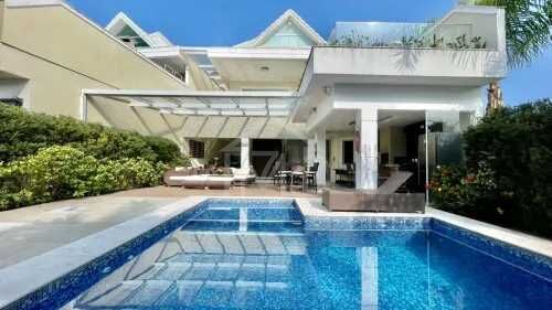 CASA TRIPLEX COM 4 SUÍTES, NO CONDOMÍNIO INTERLAGOS DE ITAÚNA NA BARRA DA TIJUCA COM SEGURANÇA 24 HORAS, ÁREA DE LAZER E PRÓXIMO AO COMÉRCIO. 1° andar: Sala em diversos ambientes que se integra a varanda gourmet, lavabo finamente decorado e suíte de apoio. Copa-cozinha com ilha repleta de armários embutidos, área de serviço e dependencia completa. 2° andar: São 3 suítes (uma revertida em closet) todas com armarios embutidos e varandas, a suíte master com acesso a varanda e closet. 3° andar: Sótão dividido em dois ambientes sendo um uma sala de tv, escritório e um banheiro condomínio Interlagos de Itaúna oferece uma excelente infraestrutura aos seus moradores com monitoramento e sistema de segurança através de câmeras em toda sua extensão. Facilidades: O comércio e transporte são destacados através da estação de BRT e a proximidade com os principais shoppings, hospitais e supermercados da região sendo possível o acesso a pé à diversos lojas de conveniência no shopping Map Barra.