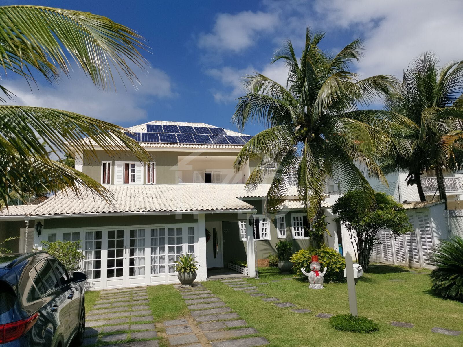 Belissima casa duplex, fucionalidade e conforto. Amplo jardim. 1º PISO: amplo salão em três ambientes, com split e acesso direto ao jardim de fundos, com piscina, sauna à vapor e área gourmet coberta com churrasqueira e forno de pizza. Acesso pelo salão a área privativa com academia, escritório e 2 quartos, sendo um suite. Espaçosa copa e cozinha completa integradas , tendo acesso a lavanderia corredores laterais de serviço levando à área gourmet, piscina e sauna. 2º PISO: Sala intima 2 suítes com vista varanda e uma suite master co closet, split e sala de banho.. Casa co placas solares instaladas e poço artesiano com filtros para tratamento da água baixando em 80% os custos mensais totais.Imperdível.
